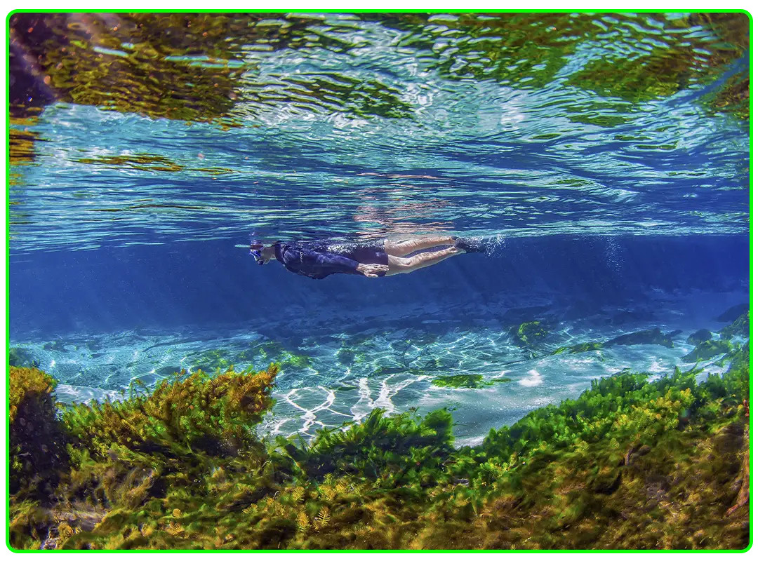A água mais transparente do Brasil (e 3ª do mundo). A vegetação no fundo cria um jardim subaquático hipnotizante. #TransparênciaAbsoluta