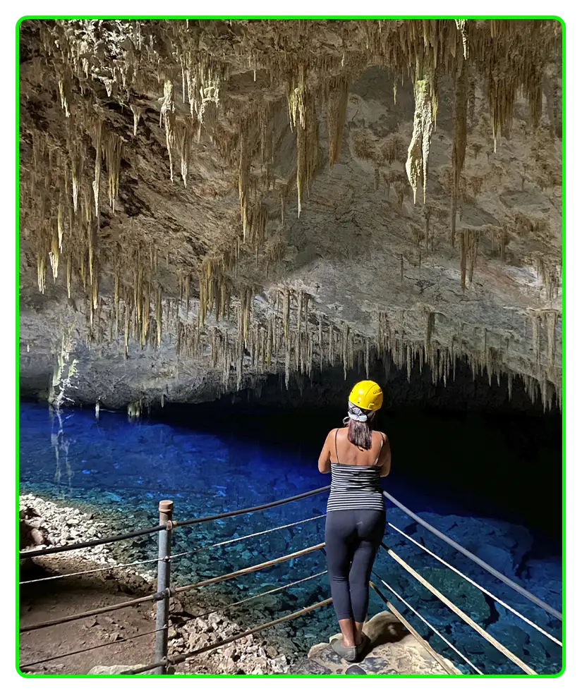 Nenhuma foto faz justiça. Descer os degraus e dar de cara com esse azul profundo é uma experiência quase espiritual. Um monumento natural esculpido por milhões de anos.