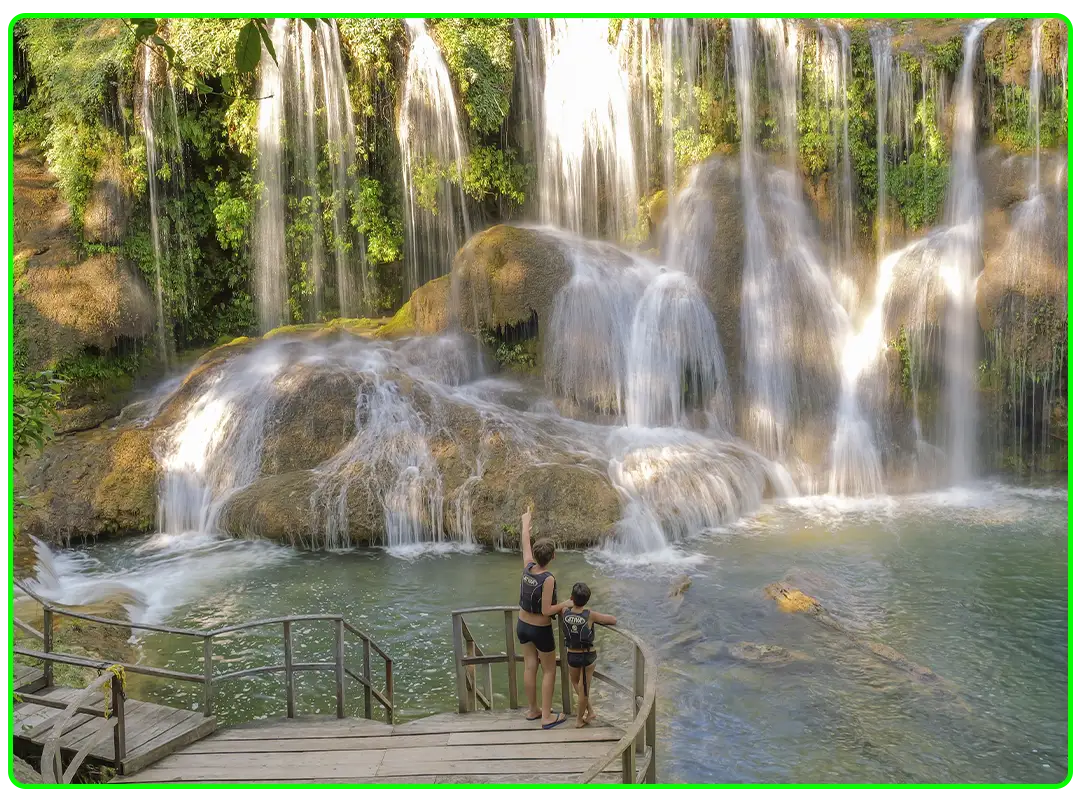 Caminhe por trilhas de madeira suspensas e descubra 7 cachoeiras incríveis para banho no Rio Mimoso. Cenário de filme.
