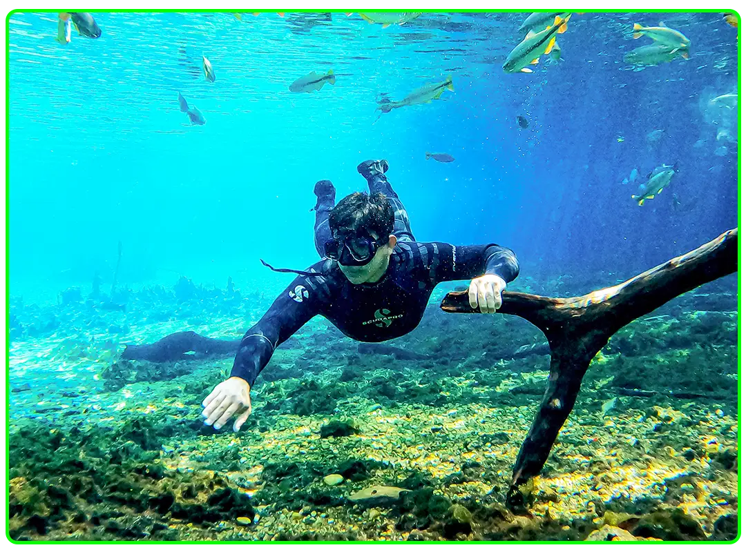 O "Rei" das flutuações. A maior variedade de peixes e um percurso longo em meio à mata nativa. Inclui um almoço de fazenda inesquecível. #FlutuaçãoInesquecível